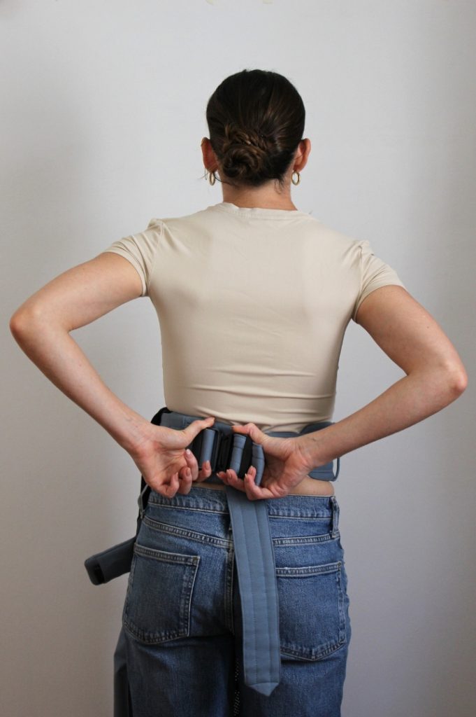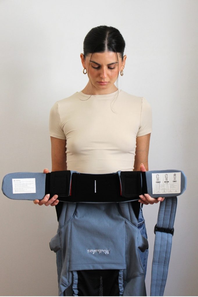 Cierra el cinturón lumbar abrochando la hebilla de seguridad hasta que haga clic.
