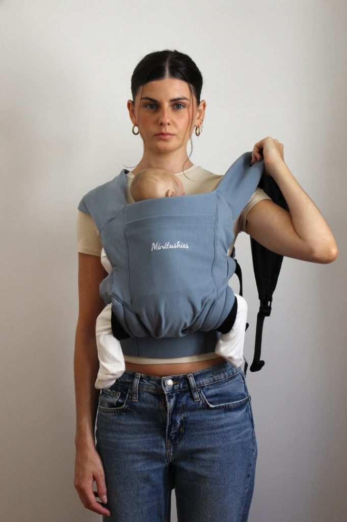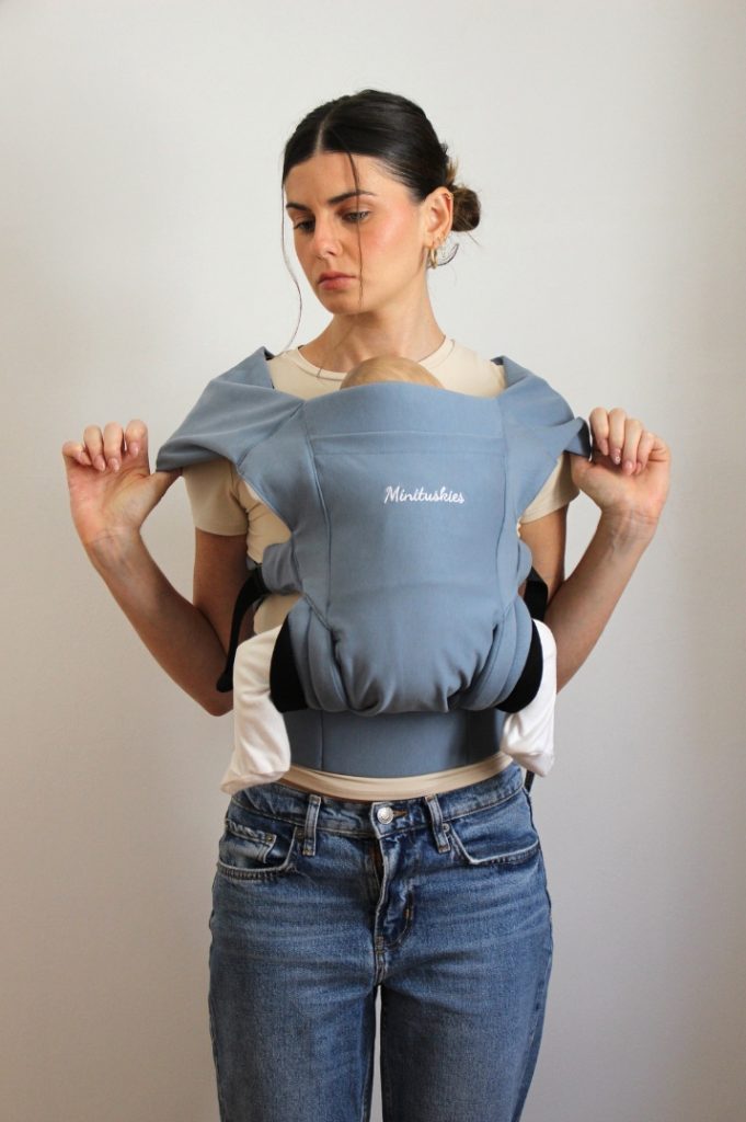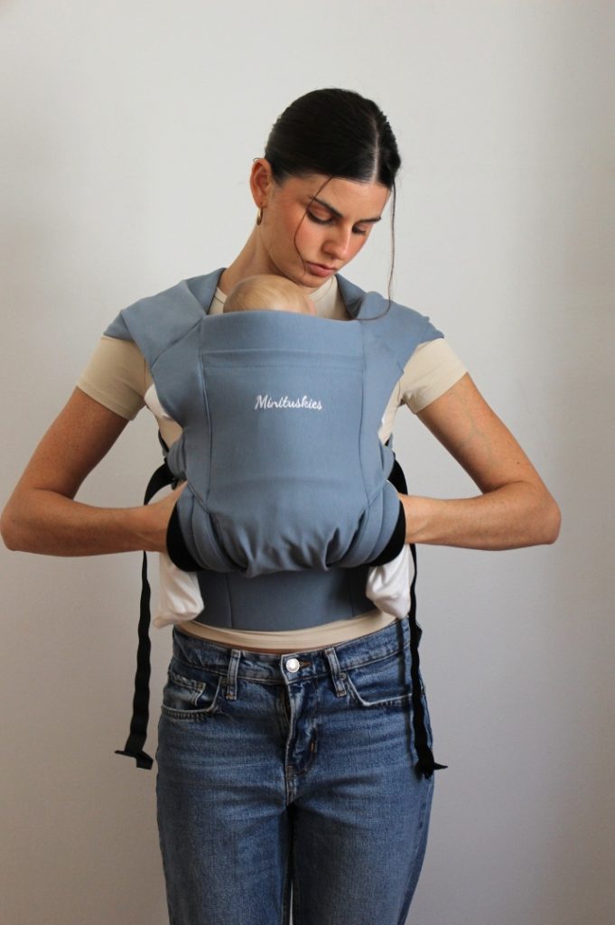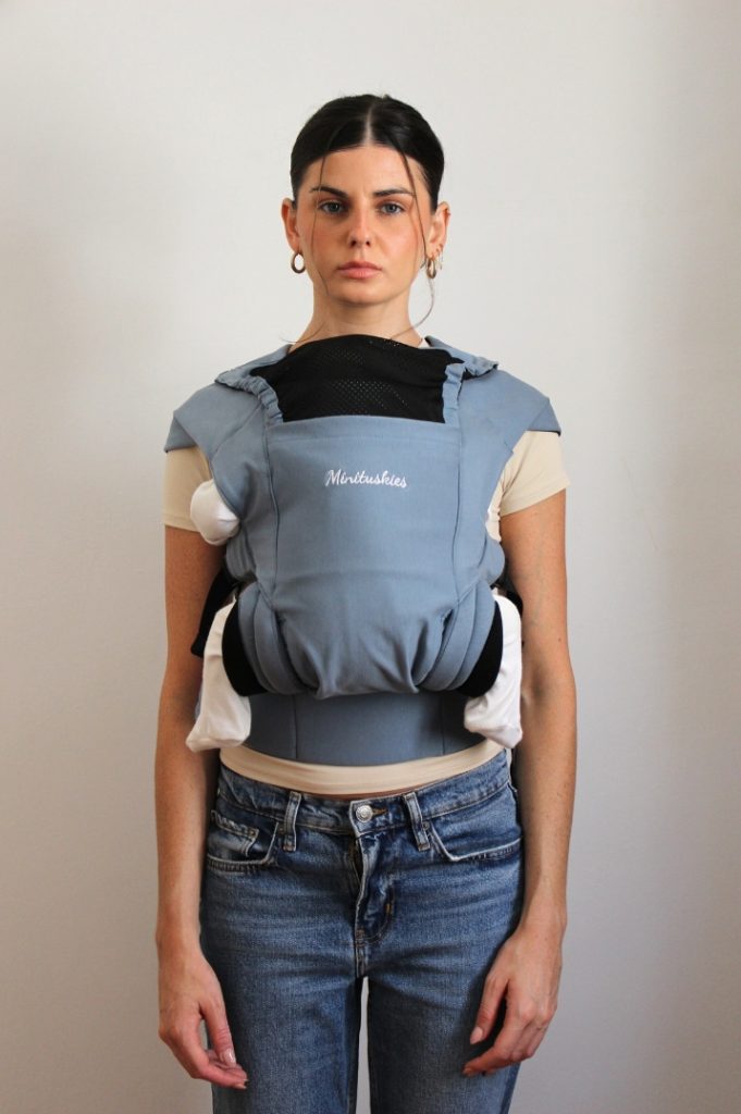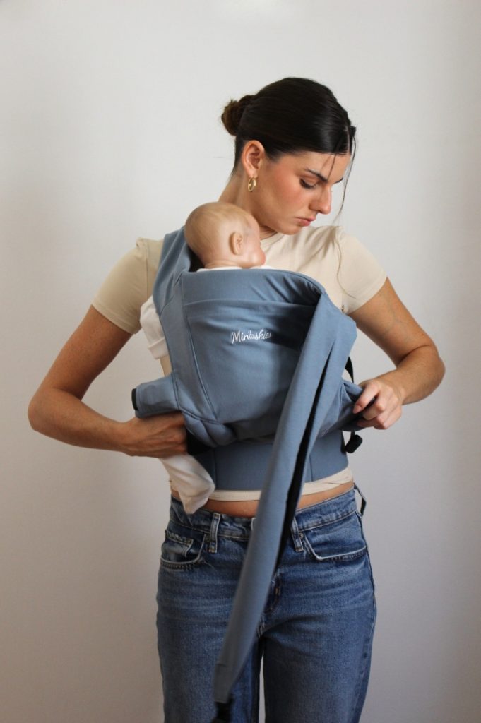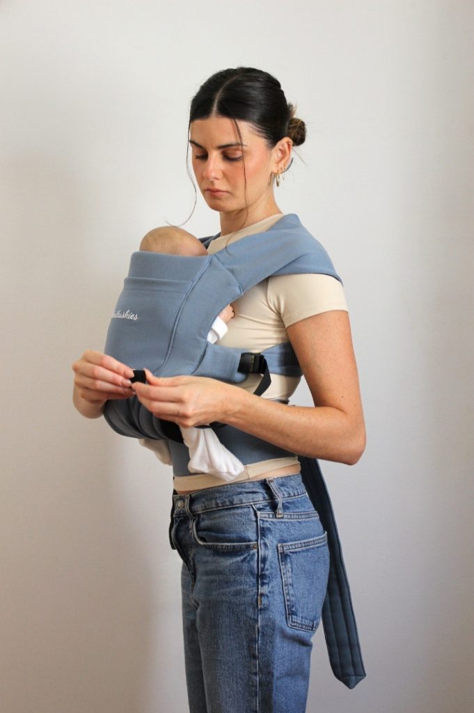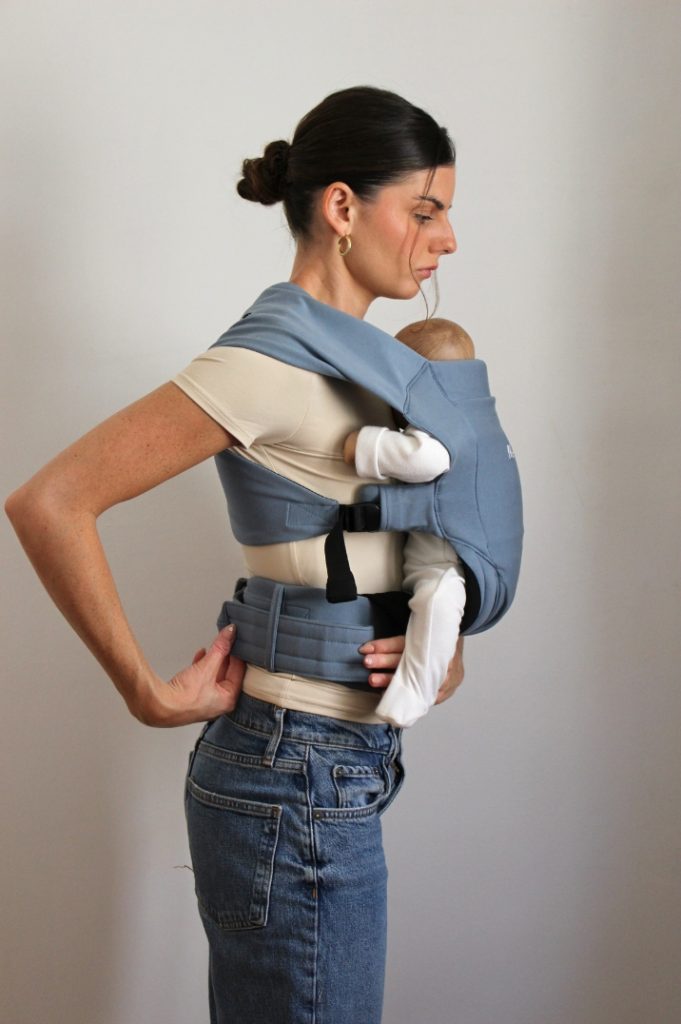 Ajusta ambas asas simultáneamente. Asegúrate de que tu peque esté cómodo y no demasiado apretado contra tu cuerpo, dejando espacio para que pueda mover la cabeza.