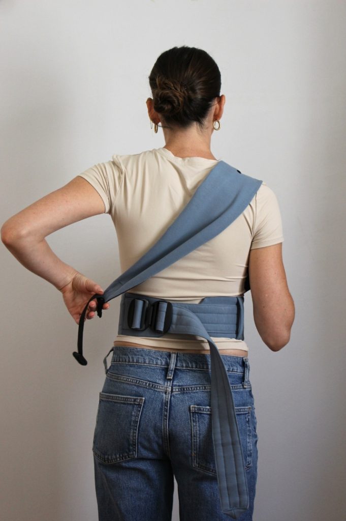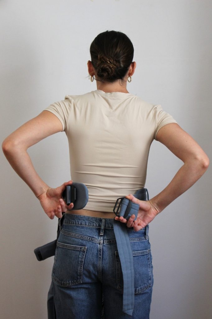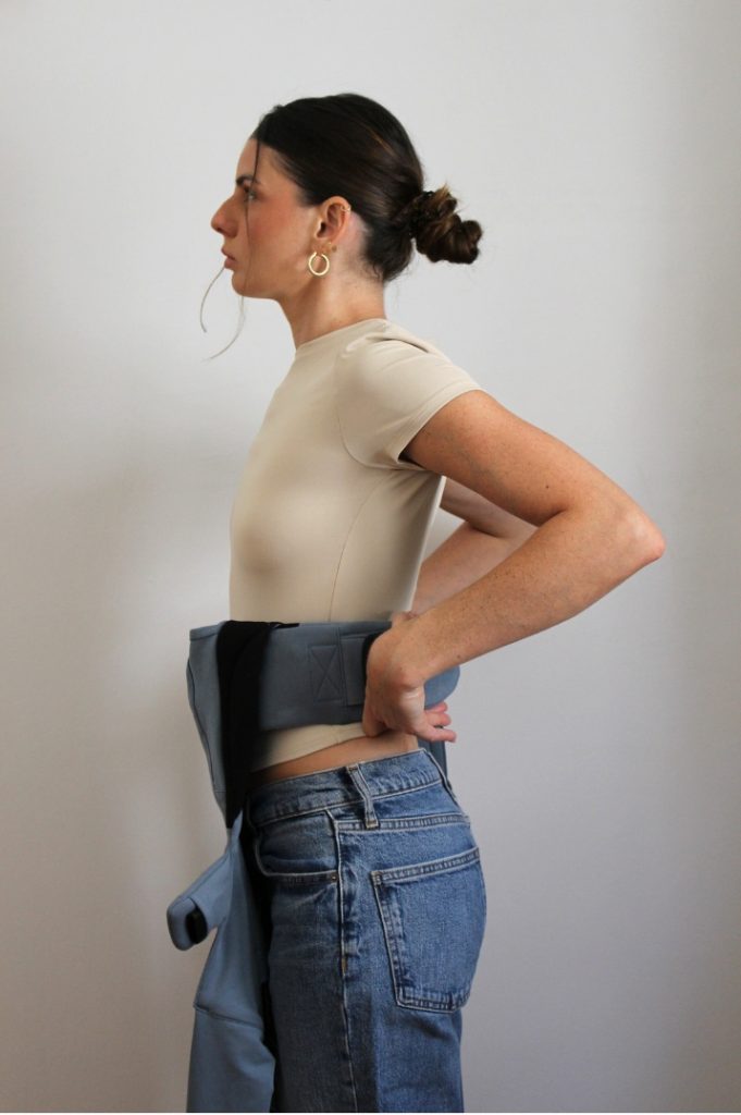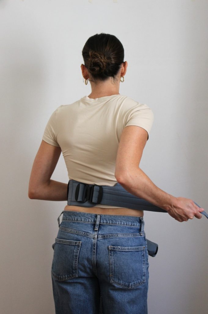 Pon el cinturón lumbar por encima de las caderas, asegurándote de que quede cómodo y a la altura deseada.