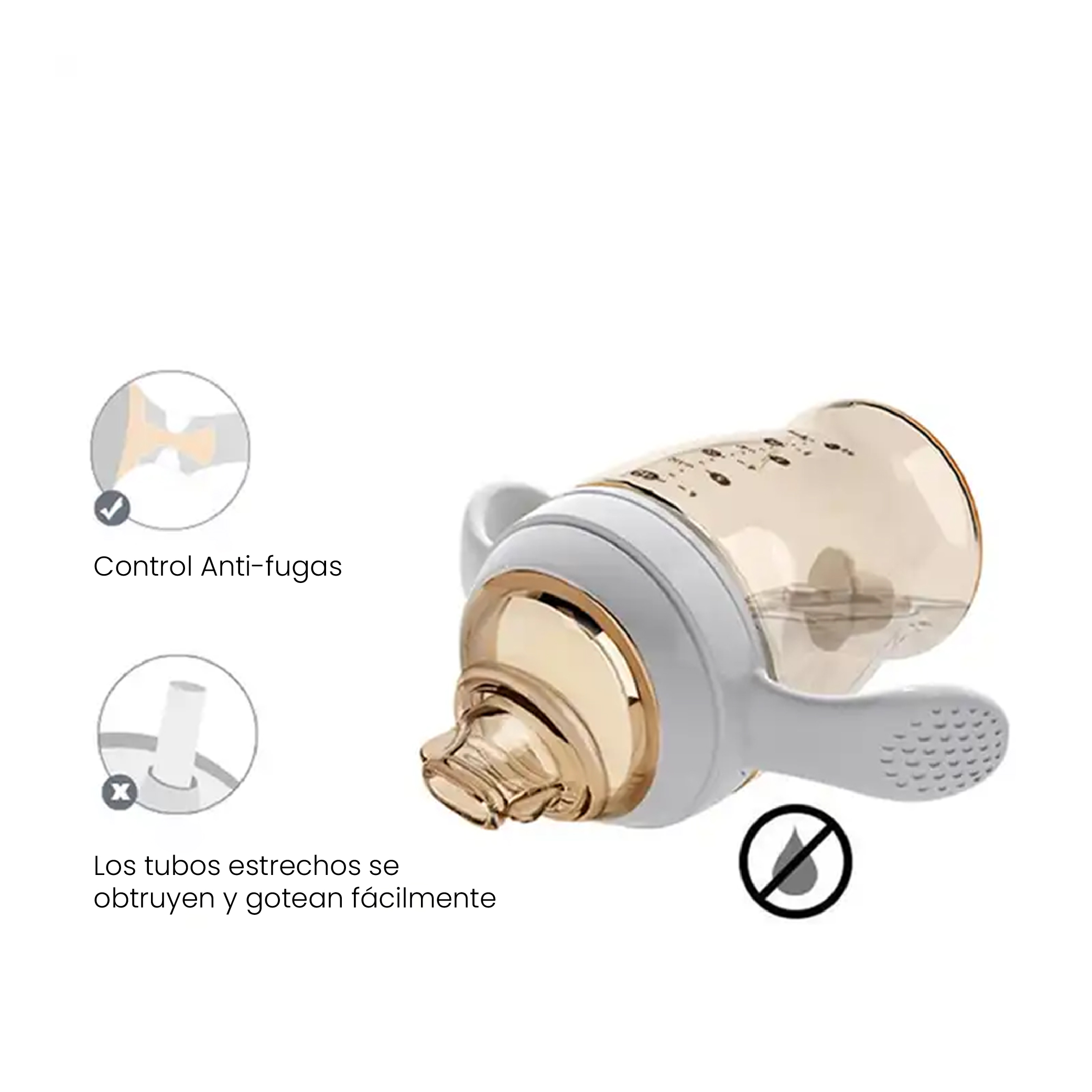 - Diseño Versátil: La pajita 360° guía el líquido, permitiendo que el bebé agarre y se alimente en cualquier posición cómoda para él.