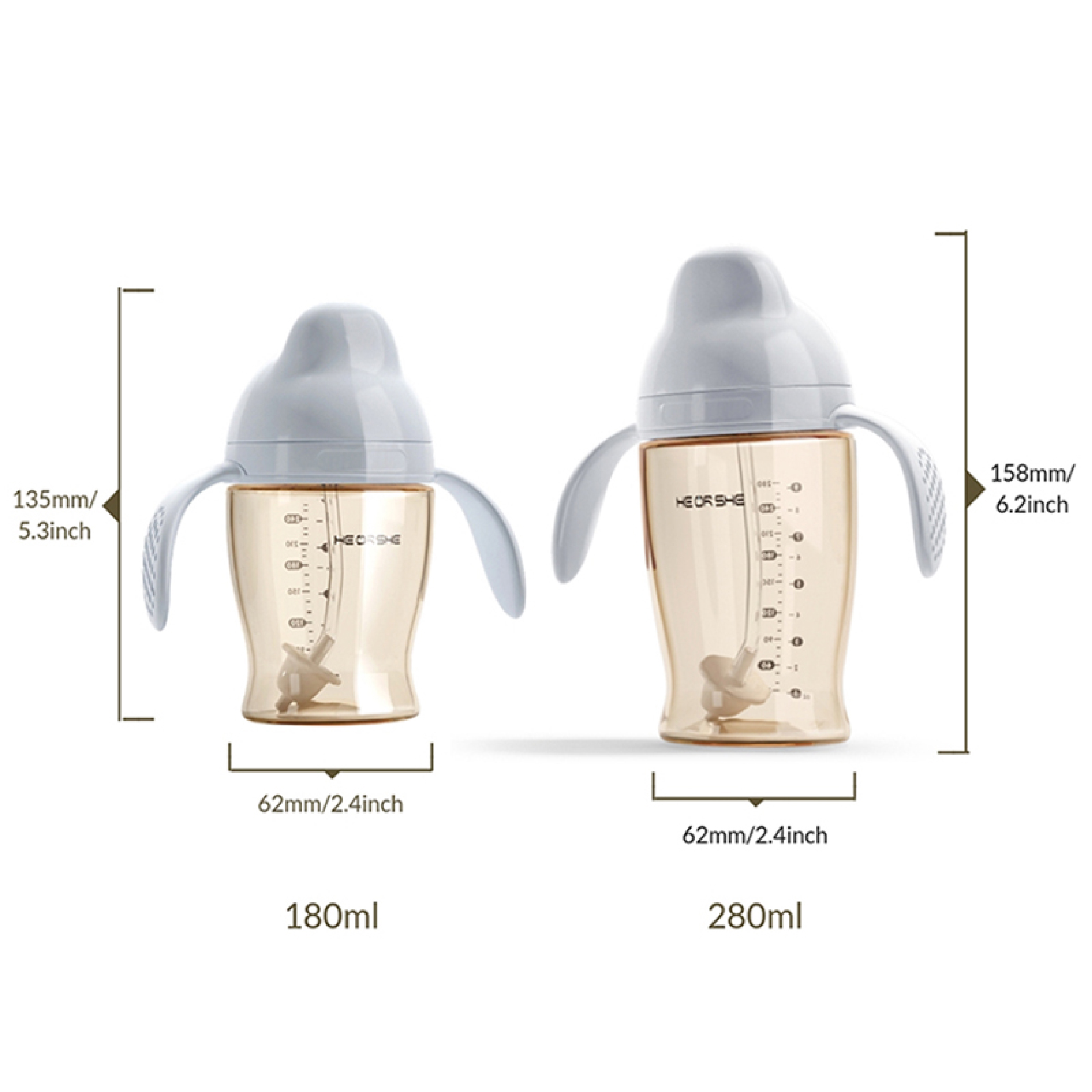 La botella Dental-Care de HEORSHE ha sido diseñada pensando en la salud dental de tu bebé. Nuestra tetina única, con una “pequeña ala”, distribuye uniformemente la fuerza aplicada durante la succión, reduciendo la presión sobre cada diente y la mandíbula, promoviendo un crecimiento dental saludable.