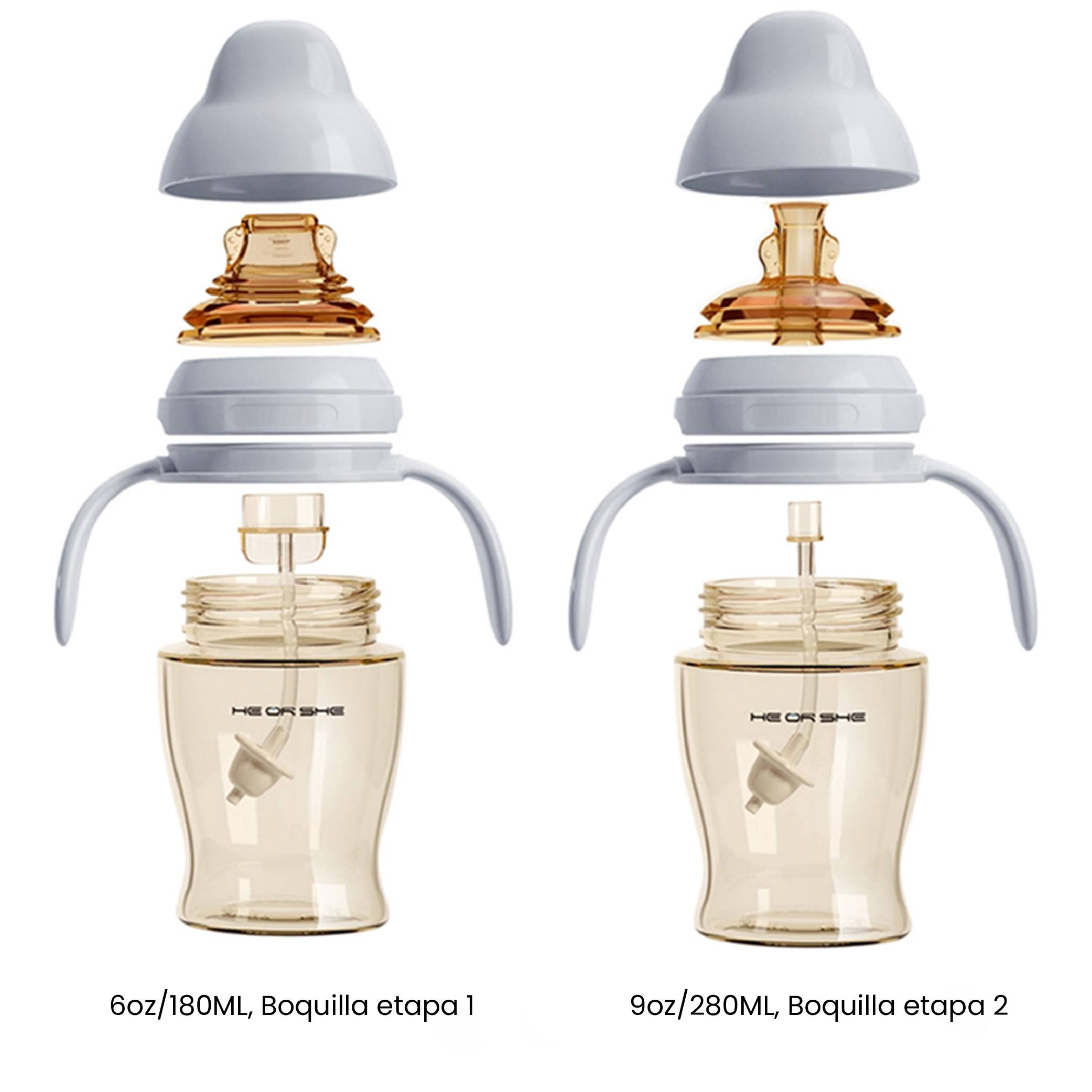 - Diseño Versátil: La pajita 360° guía el líquido, permitiendo que el bebé agarre y se alimente en cualquier posición cómoda para él.